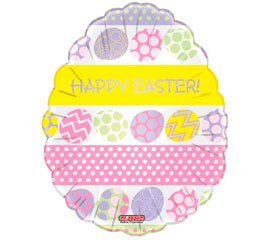 Happy Easter Egg Shaped Stripes Easter 18" Mylar Foil Balloon -